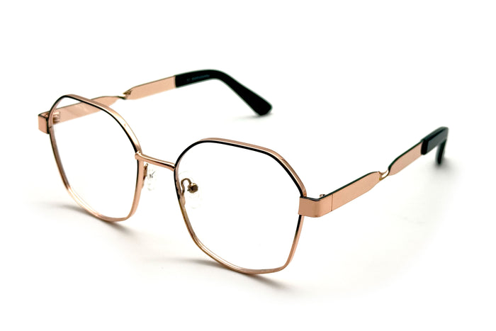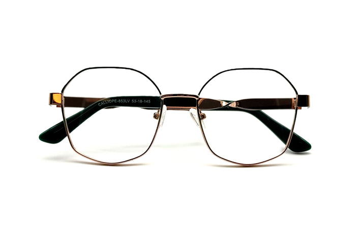 occhiali da vista saraghina modello calliope in metallo con frame oro rosa e lenti verde