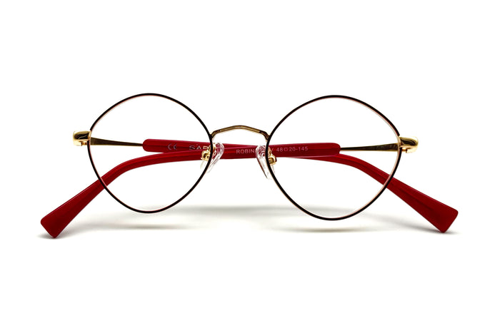 occhiali da vista saraghina modello robin in metallo con frame gold - red e lenti verde