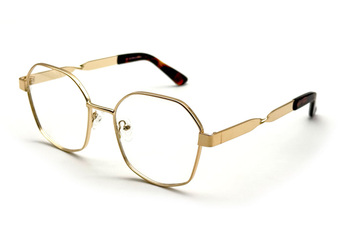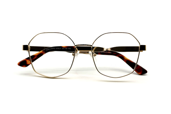 occhiali da vista saraghina modello calliope in metallo con frame oro - terminale nero e lenti verde