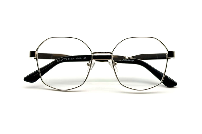 occhiali da vista saraghina modello calliope in metallo con frame argento e lenti verde