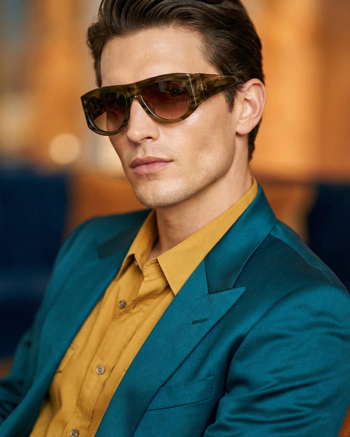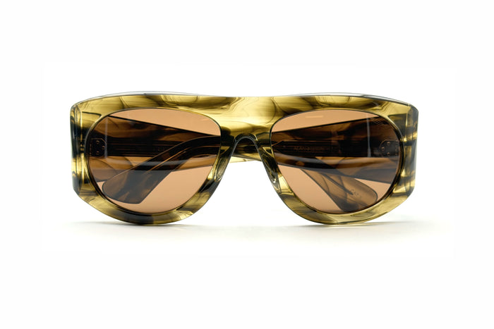 occhiali da sole saraghina modello alan in acetato con frame brown stripes e lenti brown
