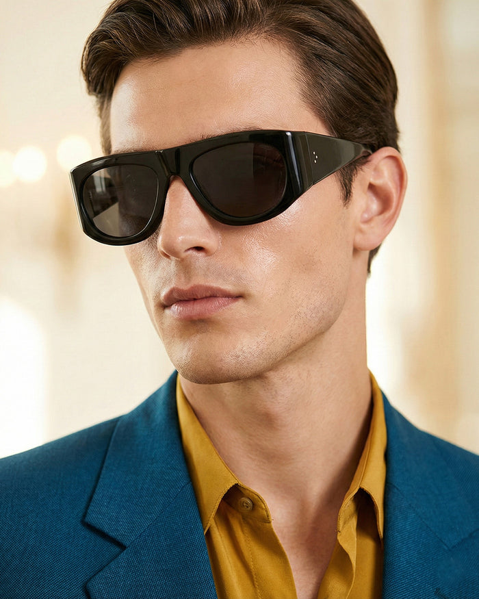 occhiali da sole saraghina modello alan in acetato con frame black crystal e lenti smoke