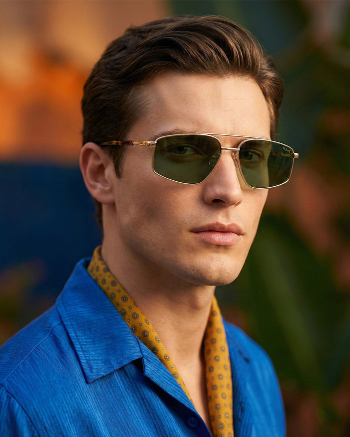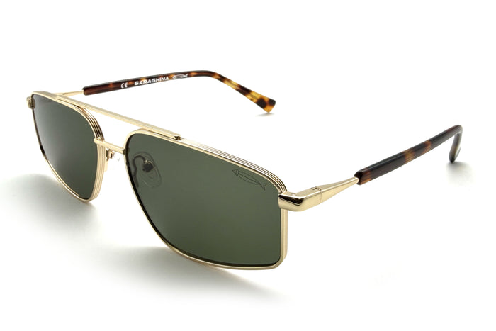 occhiali da sole saraghina modello bart in metallo con frame gold e lenti green