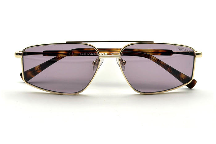 occhiali da sole saraghina modello bart in metallo con frame gold e lenti purple