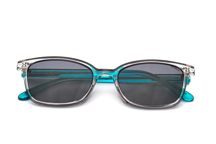 occhiali da sole saraghina modello greg in nylon con frame grigia-turchese e lenti grigia