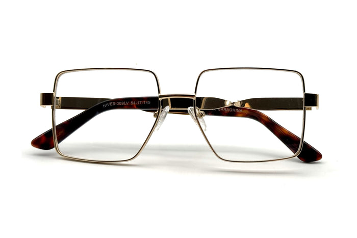 occhiali da vista saraghina modello nives in metallo con frame gold e lenti verde