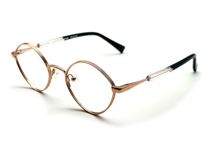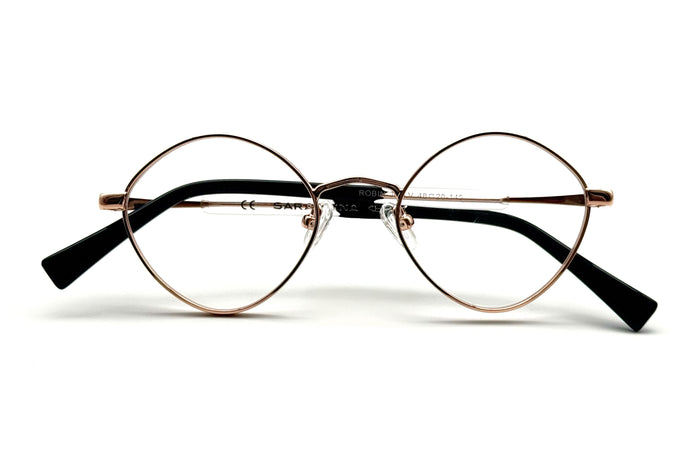 occhiali da vista saraghina modello robin in metallo con frame gold rose shiny e lenti verde
