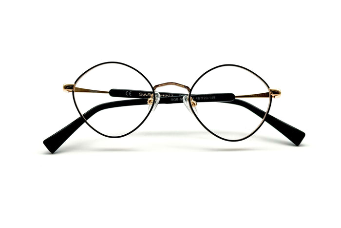 occhiali da vista saraghina modello robin in metallo con frame gold - black e lenti verde
